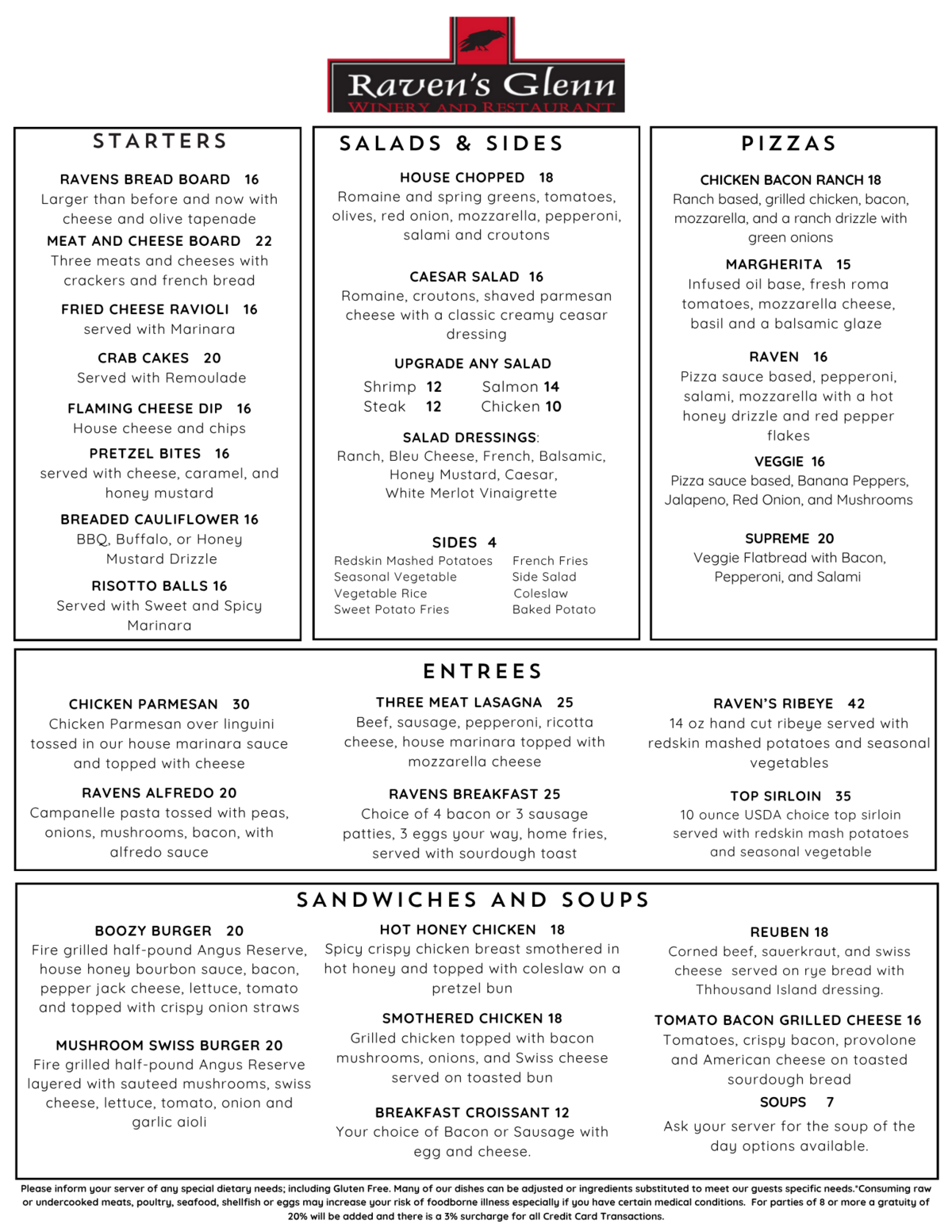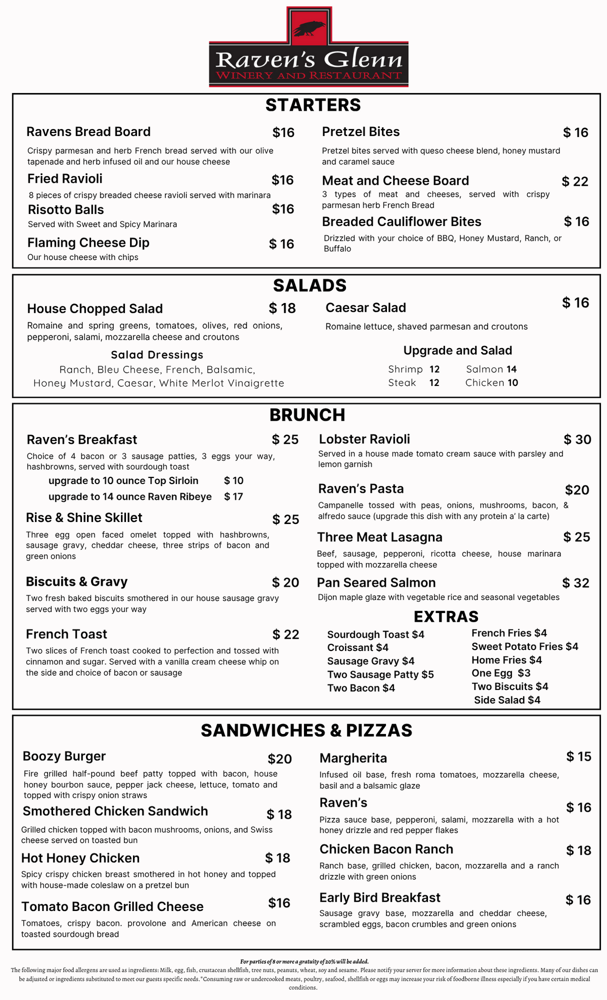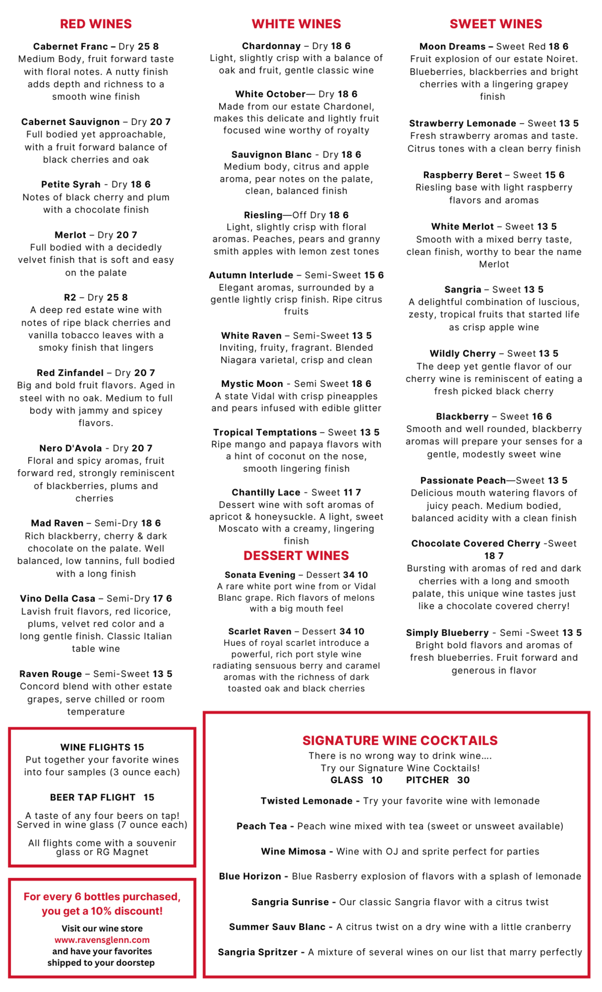 Discover the exquisite offerings at Raven's Glenn Winery! Visit us today to indulge in our diverse menu and enjoy a memorable dining experience. Whether you're stopping by for a casual tasting or a delightful meal, we look forward to welcoming you to one of the best wineries in Ohio!